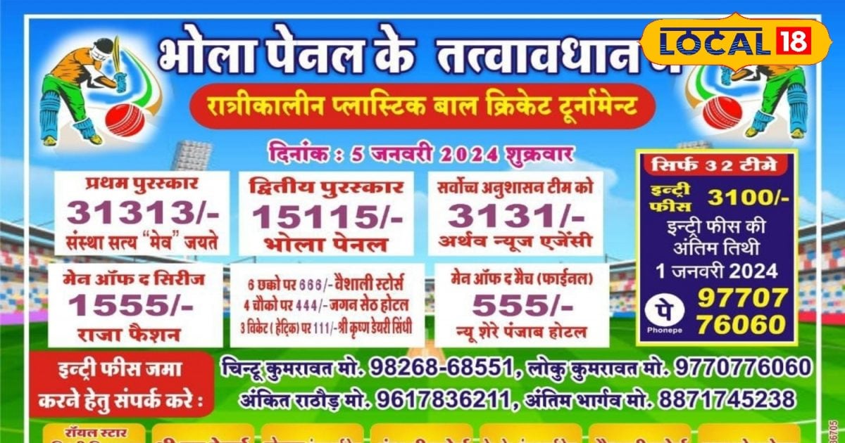 Only 32 teams can participate in the match. Till January 1, 2024, committee members can make 3100 entries on Chintu Kumrawat – 9826868551, Loku Kumrawat – 9770776060, Ankit Rathore – 9617836211 and last Bhargava – 825387. Entry fee per team is Rs. 3100 is At present around 20 teams have been entered.